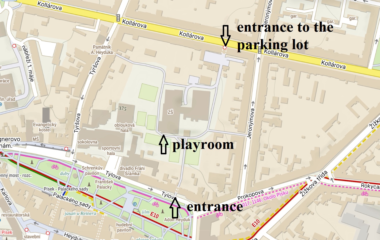 Entrance to the parking lot from Kollárova Street.